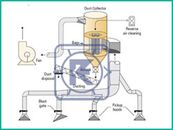 A Dust Collector is a system used to enhance the quality of air released from industrial and commercial processes by collecting dust and other impurities from air or gas. Designed to handle high-volume dust loads, a dust collector system consists of a blower, dust filter, a filter-cleaning system, and a dust receptacle or dust removal system. It is distinguished from air cleaners which use disposable filters to remove dust.